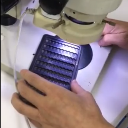 2、將產(chǎn)品放置于防靜電皮筋線上,通過除塵區(qū)域除塵、集塵;